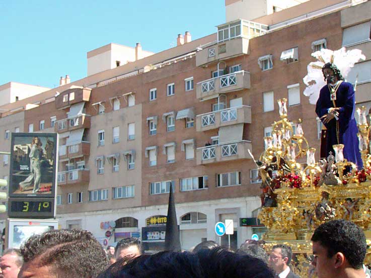 La Hdad del Poligono inició su estación desde tempranas horas de la mañana del Lunes Santo La Hermandad del Rocío cuyo Sagrado Titular estrenaba una túnica blanca nueva .-