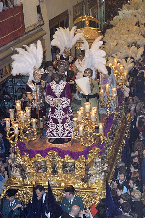GRAN PODER Les acompañana un representación de la Hdad Santa Genoveva El San Juan de Juan de Mesa , presentaba una encarnadura limpia y restaurada , tras su última intervención MACARENA Resultaba chocante la nueva túnica en plata del Señor de la Sentencia en el conjunto dorado del paso de Misterio . No pega .- Este año la Macarena