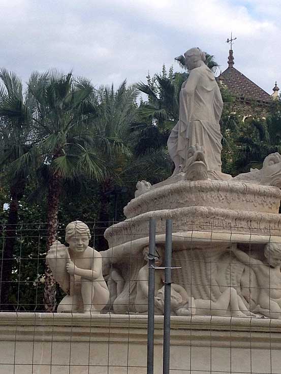 El caso, es que como pueden ver en las fotos ha sido sometida a una nueva limpieza asi como se le ha añadido los cuatro niños ( putti ) en cada esquina portando unas caracolas en diferentes posiciones rememorando su diseño tal como fue inaugurada originalmente , y que hemos podido volver a ver en los últimos dias del mes pasado .-