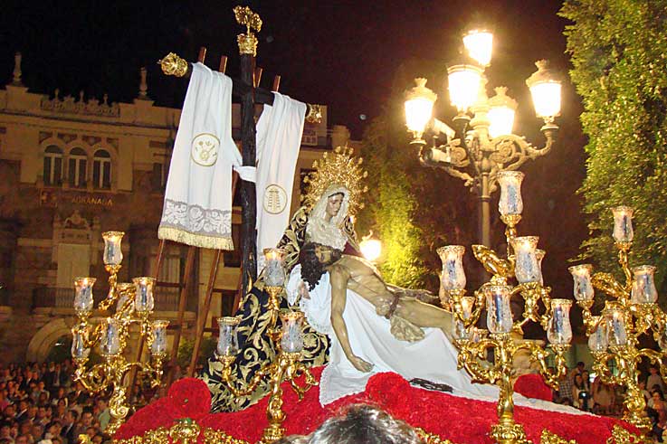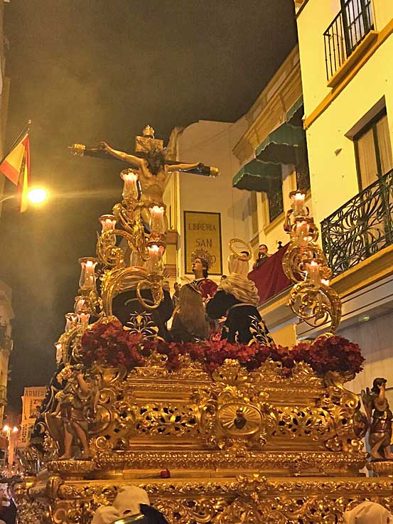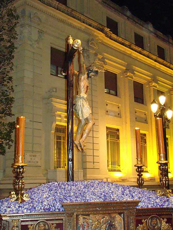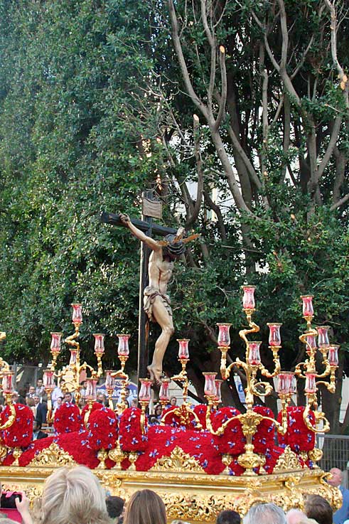 La Sed . La Virgen de Consolación estrenaba un barquito en oro cristal de roca y piedras preciosas San Bernardo El Cristo del Buen Fin. presentaba este año un extraño exhorno floral para un Crucificado