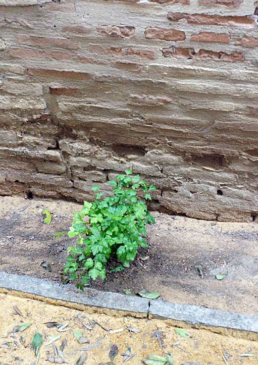 Bajo esta lápida hay un arriate con un humilde perejil que tiene