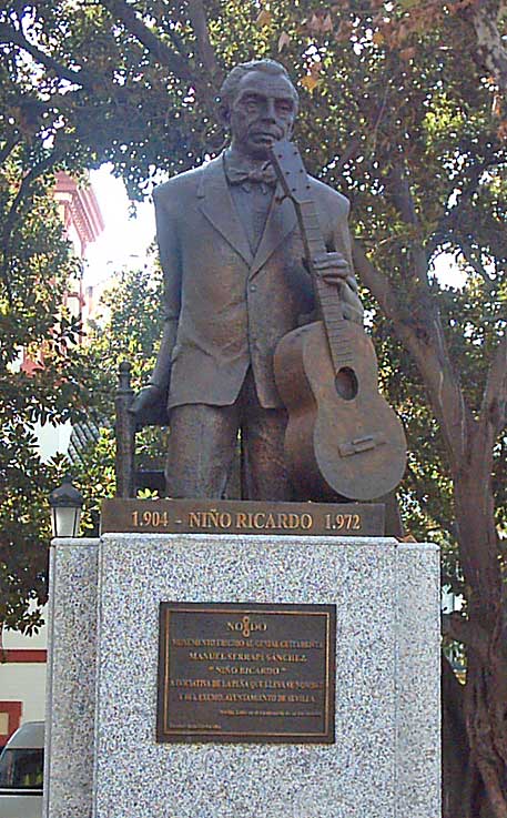 También tiene un monumento en el centro de la plaza Cristo de Burgos, Fue colocado en 2004 por iniciativa de la Peña “Niño Ricardo” y con la colaboración del Ayuntamiento de Sevilla, celebrando el centenario del nacimiento de este artista . En el centro hay una placa donde se puede leer :