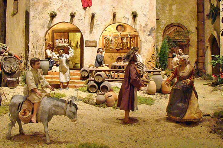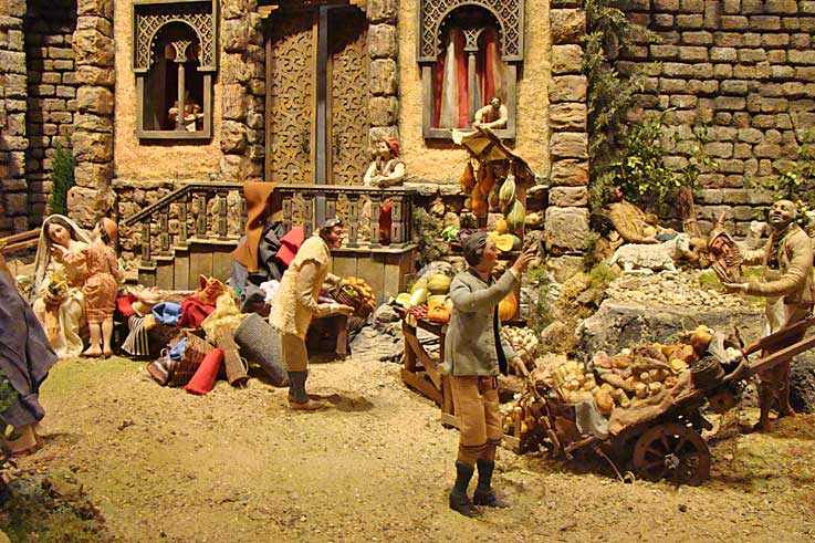 El Patio de la sede de la Plaza de San Francisco acoge un nacimiento napolitano con más de un centenar de piezas de candelero (articuladas). De lo religioso a lo popular, el montaje del belenista Luis Garduño nos muestra diferentes escenografías que recrean momentos cotidianos del siglo XVIII.-
