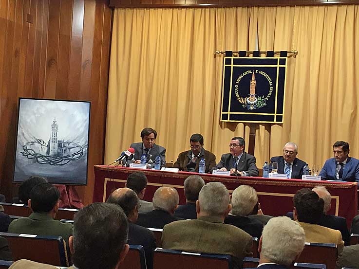 12 de Diciembre de 2015 Ayer, a cien dias de que la primera este en la Campana, en la sede del Círculo Mercantil de Sevilla, de la calle Sierpes, con gran asistencia de representantes de Hermandades de Sevilla y medios de comunicación , tuvo lugar la presentación de la décima edición del Círculo de Pasión, que corrió a cargo de su presidente D. Práxedes Sánchez Vicente , de la tradicional muestra de enseres cofradieros que se celebra en los días previos a la Cuaresma y durante ella, de nuestra Semana Santa de Sevilla. Un entidad que año tras años llena un gran espacio expositivo y cultural ( cuya orferta en nuestra ciudad es casi 0 ) , asi como le hacer llegar gratis et amore, a propios y a extraños los tesoros que hay en las vitrinas de las cofradias sevillanas, así como el ayer y el hoy de las mismas .- La edición de próximo año se anuncia con el cartel obra del pintor Miguel Ángel González, quien recientemente ha sido nombrado por el Consejo de Cofradías para pintar el cartel de Las Glorias de Sevilla 2016 .- Esta edición será muy especial pues en ella se conmemora el décimo Círculo de Pasión contará con piezas de las hasta hora 29 corporaciones que a lo largo de esta década han pasado por las instalaciones del Mercantil. Estamos hablando del 40% de las Hermandades de Penitencia de nuestra ciudad Por otra parte, en Círculo de Pasión 2016 las Hermandades de la Esperanza de Triana. inicará el ciclo de exposciones asi como la Hermandad de La Redención, presentará durante los días de la muestra el nuevo manto de salida de la Virgen del Rocío. |
