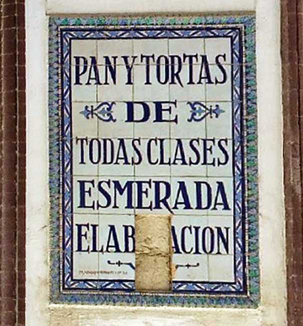 Eran de ese tipo de azulejos donde el texto se convierte en un reclamo seductor al cantra las excelensias del producto y elogiar las bondades de la mercancia . como puden apreciar no hay imágenes . desde la fachada del Horno de Santa Cruz se soliicta la atención de los transeuntes con las siguientes frases "ESPECILAIDAD EN PAN DE VIENA CALIENTE A TODAS HORAS " o "PAN Y TORTAS DE TODAS CLASES . ESMERADA ELABORACIÓN" .- Obra de Mensaque Rodriguez y Cia , a la cuerda seca de 105 x 75 cm cada uno y fechados entre 1950 y 1955 . Pues ya los pueden tachar de nuestro patrimonio .-