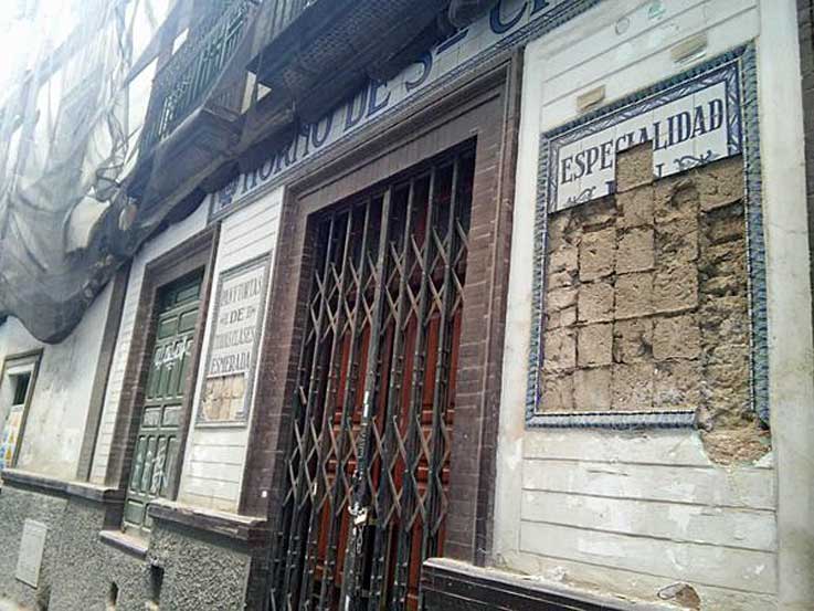 25 de Dicimebre de 2015 Ayer en el Twitter de https://twitter.com/XYZdiario ,publicaban la foto denuncia de los destrozados azulejos publicitarios del Horno de Santa Cruz , sito en la calle Guzman el Bueno num 12 de Sevilla .- No todo es parque de Maria Luisa, no todo es Plaza de España , en esta silente destrucción de la Sevilla cerámica y que en poco o nada interesa a nadie . En este caso, le ha tocado el turno a unos lienzos cerámicos publicitarios ( no todo son azulejos devocionales ), de los tnatos que existen en nuestra ciudad. En la siguientes fotos pueden ver como estaban antes de su total destrucción .-