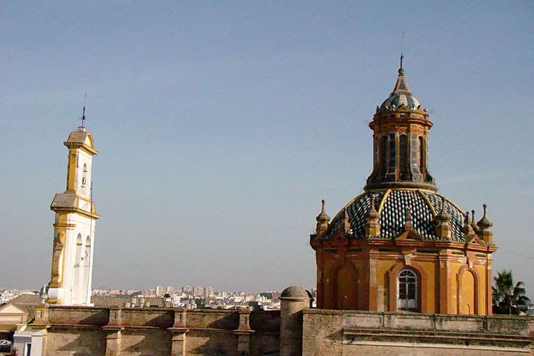 Esta es una vista dificil . A su izquierda tiene la Iglesia del Salvador ( EN LAS CUBIERTAS DEL SALVADOR - vistas de Sevilla - ) , en el centro el mirador de la torre Banesto de la Expo del 92 y a su derecha pintado en ocre, una de nuestras joyas escondidas es el Oratorio de San Felipe Neri, ( Iglesia de San Alberto ) situado en la calle Estrella, 2, expropiado a los Carmelitas en el siglo XIX pasando a los Padres Filipenses .-