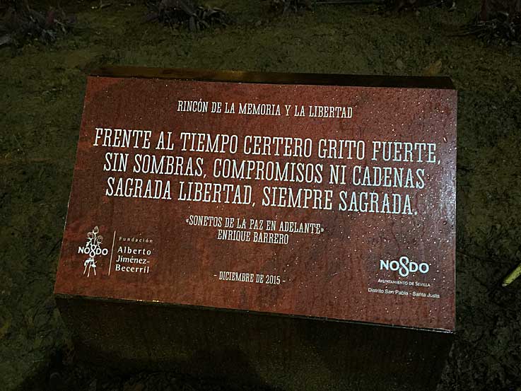 El que les escribe fue amigo y compañero de aulas de Alberto y Ascen , y su eterno recuerdo están donde deben de estar en Sevilla, y donde las personas de bien, ni perdonan ni olvidan a los hijos de puta que los mataron, pero es un error montar un monumento de estas características, precisamente junto al lugar donde celebrarón su cruel asesinato, no estaría demás reconsiderar otra ubicación .-