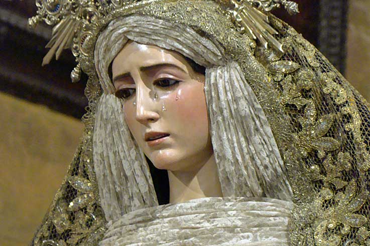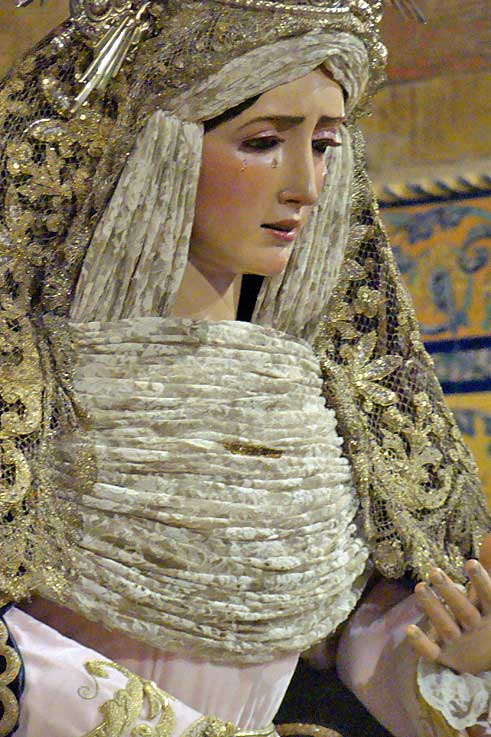Recuerdos unos restauradores que acomentieron la limpieza de una de las grandes devociones sevillanas, y en su labor vislumbraron el color original de los ojos de esa Sagrada Imagen . Puesto en contacto con la comisión de la Hermandad en cuestión, le informaron de ese hallazgo , pero les comentaron dos cosas: Primero que los ojos era el 80% de la expresión de un rostro , y lo segundo la "memoria de la retina" de legiones de devotos se podría ver sorprendida .- Al final consensuaron que era mejor no llevar la limpieza hasta un limite que podría transformar una mirada, una cara a la que se vuelven tantos ojos , y sensatamente consensuaron parar .- Las grandes restauraciones y limpiezas de conservación son aquellas que no se notan . Mal vamos, si tenemos que acostumbrar nuestra retina a una nueva visión, por muy limpia que esta sean .-