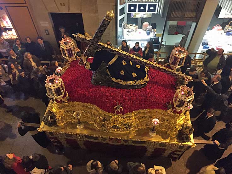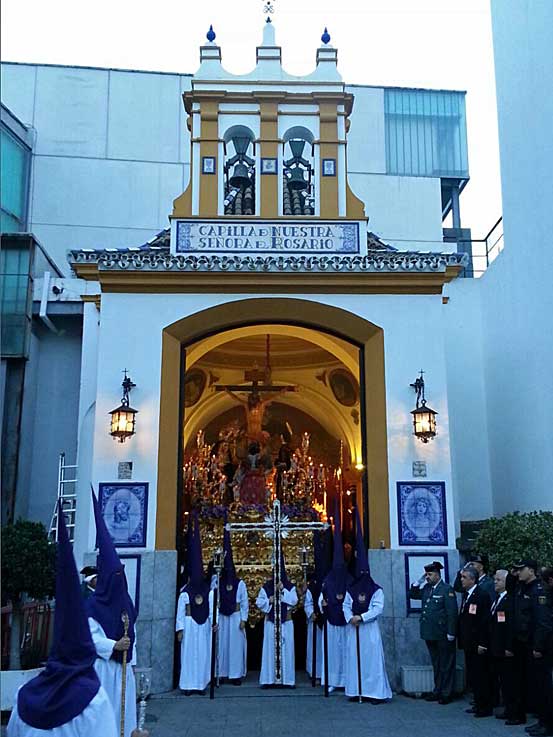 22 de Marzo de 2016 Ayer fue un dia muy complicado diluvió en Sevilla por la mañana , paro y la primera que decidió no hacer estación de penitencia fue la Hdad del Poligono San Pablo .- La Hdad de Santa Genoveva ( foto inferior ) decidió salir, pero a primeras horas de la tarde se dió la vuelta a su templo ( foto inferior ) . Estrenaba la restauración del palio ( VER ) La Hermandad del