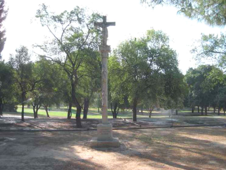 Hoy nos vamos al parque del Alamillo, nuestra "Expo del 92 permanente" en los que a regiones españolas se refiere, encontrandonos con una segunda réplica de un cruceiro gallego. Se trata de un monumento realizado en granito, compuesto como ven por una grada y pedestal, donde puede leerse la siguiente inscripción: "Galicia y Sevilla en el camino eterno de la amistad, 2005". -