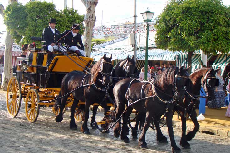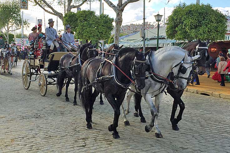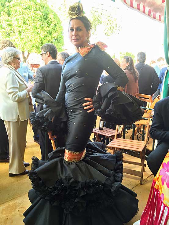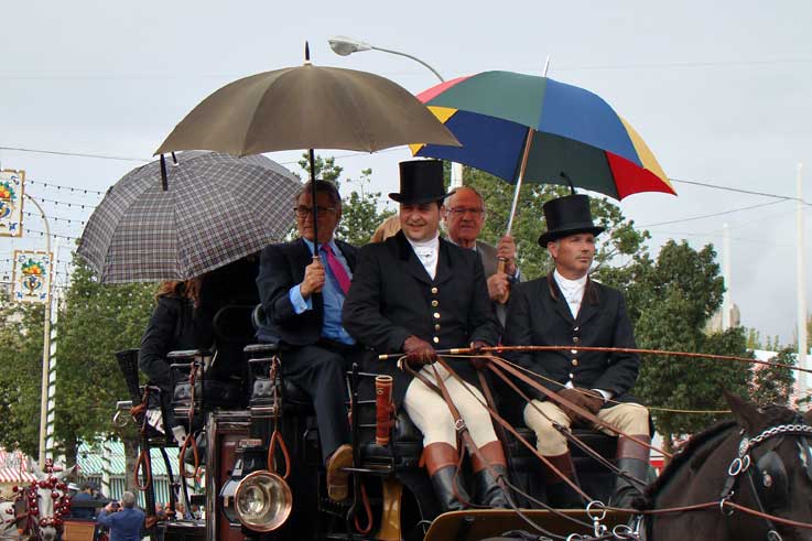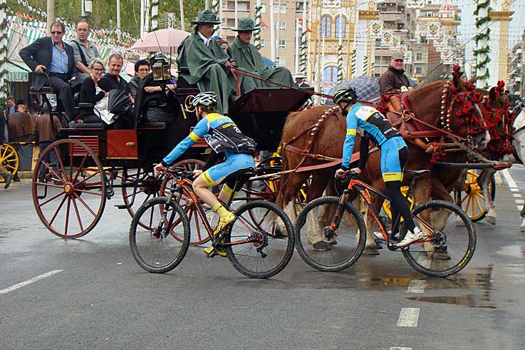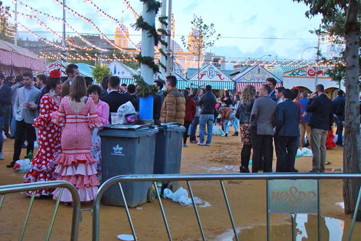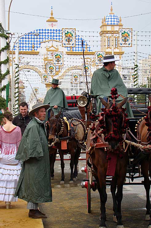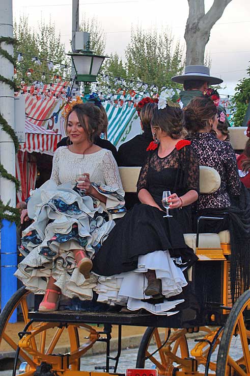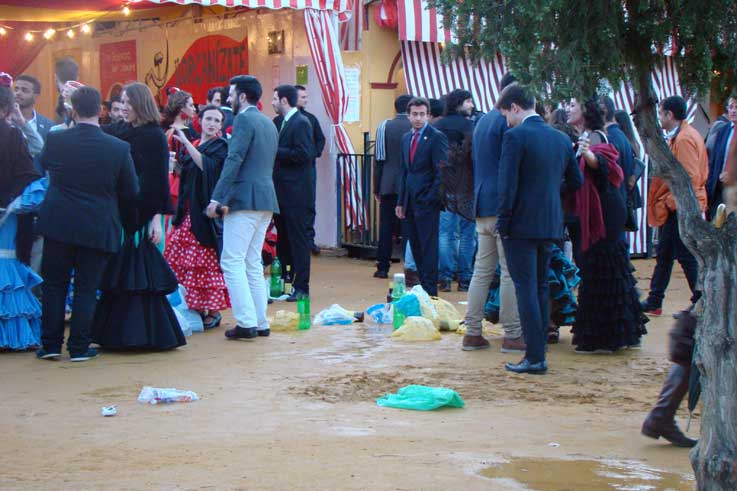 Mucho capote como en alguna desacertada y frustrada salida procesional de este año de cuyo nombre no quiero acordarme Pero como dice la letra de la canción de Alejandro Sanz , "después de la tormeta siempre llega la calma" , salió el Sol, pero para que se hagan una idea era como si hubieran puesto el aire acondcionado, dentro y fuera de las casetas , y el personal que tenía ganas de Feria se vino arriba en el último tercio, pues se estaba realmente a gusto Extraño enganche una media potencia a la inglesa Una caseta llena de flores En cuanto a nuestra breve sección de moda flamenca. Unos curiosos pendientes con la Virgen del Robledo, patrona de Costantina - Sevilla - De las pasarelas a la Feria un impresionante vestido de la diseñadora Juana Martín ¿ Tanto control para carruajes y despues vemos Le Tour dentro de las calles de la Feria ? . Una cosa es que los ciclistas tengan patente de corso en el carril-bici-tieso de Sevilla pero esto ademas de peligroso está fuera de lugar Un año mas la tradicional botellona junto a la parada de taxis al final de la calle Antonio Bienvenida , que incluso resulta peligroso para las personas mayores que pretenden acceder a tomar un taxi y tropiezan con las bolsitas , llenas de botella de ginebra o ron , que hay repartidas por el suelo . Con la simple presencia de un patrullero de policia subido en la acera bastaria para evitarlo . Triste imagen tan inadecuda de la Feria , y que no tiene nada que ver con ella . ¿ En esto tampoco hay control policial , que curiosamente están muy cerca de este enclave de la Feria ? .-