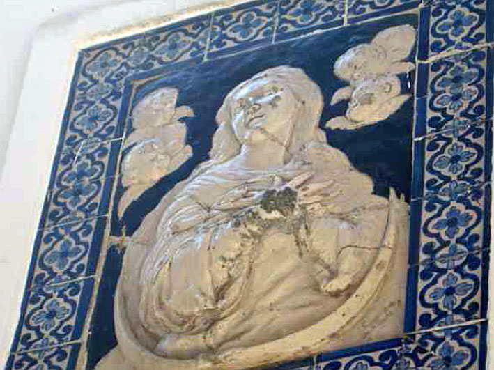 Aquí tienen un magnífico lienzo cerámico con solo el busto de la Inmaculada Concepción, en concreto el cuadro de Murillo titulado "Concepción de la Media Luna", que está en el Museo del Prado. Curiosamente s.e.u.o , es el úncio que de este tema esta hecho en relieve de barro vidriado, y pintado de blanco sobre fondo azul .-