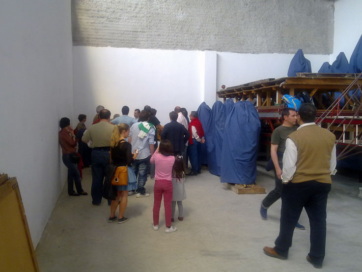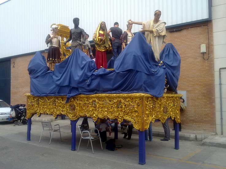 14 de Junio de 2016 Para no caer en reiteraciones innecesarias y para que se pongan en situación antes de seguir leyendo deberia ver ( o volver a ver ) para recordar, el "capítulo" anterior : MUDÁ "HISTÓRICA" EN SAN BENITO .- Si en el enlace anterior veía la salida , aquí gracias la materila gráfico que me ha proporcionado un buen amigo , vemos la llegada a las naves de un poligono industrial donde estuvieron los pasos, mientras duraron las obras de rehabilitación de la casa hermandad .- Como la nave en cuestión, cedida al efecto no tenia la suficiente altura en la puerta hubo que desmontar y bajar todas las figuras secundarias del Misterio de la Presentación al Pueblo , e ir depostandolas una a una en su interior, dando lugra a estas curiosa imágenes .- Aquí se pueden ver la figuras ya en el suelo y debidamente tapadas Cuando se finalizó el desmontaje de la figuras secundarias de procedió a meter el paso de misterio en la nave como pueden ver en el siguiente video desde dos ángulos diferentes : .-