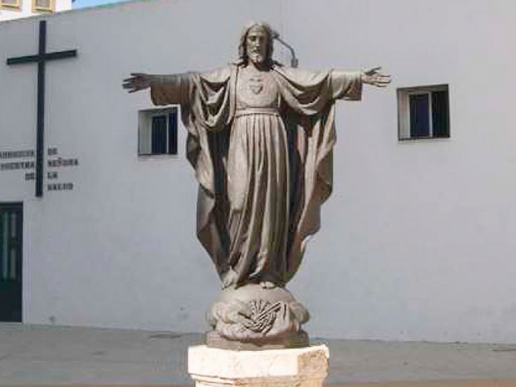 Es una imagen del Sagrado Corazón de Jesús está realizada en bronce. La escultura se alza sobre un alto pedestal de mármol Fundida en los talleres "Le Statue Religiose" de París, siendo colocada en la segunda mitad del pasado siglo XX .-