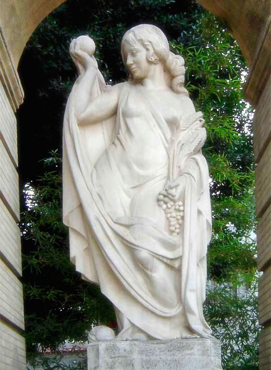 que tiene productos de huerta en una cornucopia. Ambas esculturas son de