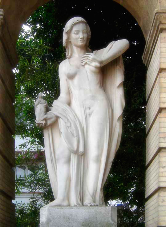en el arco de su derecha la escultura titulada La riqueza espiritual