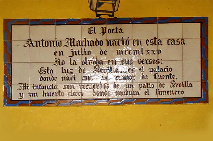 Tal día como hoy un 26 de Julio de 1875 nacía en Sevilla el poeta Antonio Machado , como consta en un azulejo que hay en la fachada de la casa o palacio o como lo quieran llamar de las Dueñas ( VER ) , junto la que pusieron un monumento horrroso ( VER ), que les faltó tiempo para ser víctima de los vándalos y alanos, estando en proceso de restauración ( y lo que te rondaré morena ) .-