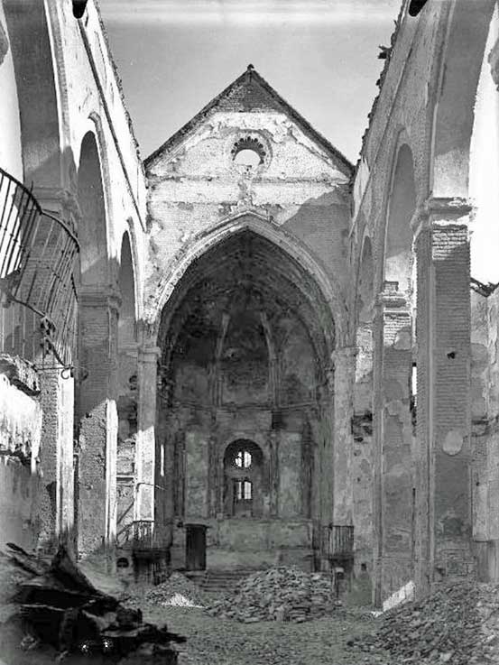 Así estuvo durante años la parroquia de Omnium Sanctorum , no por obras, no por un corto circuito, no por "unos incidentes", sino porque repitan conmigo:" ! Los rojos la quemaron hasta los cimientos durante la II República el 18 de Julio de 1936!" , no pasa nada por decir la verdad, eso es Historia de España, y bendita sean las fotos que lo testimonian .-
