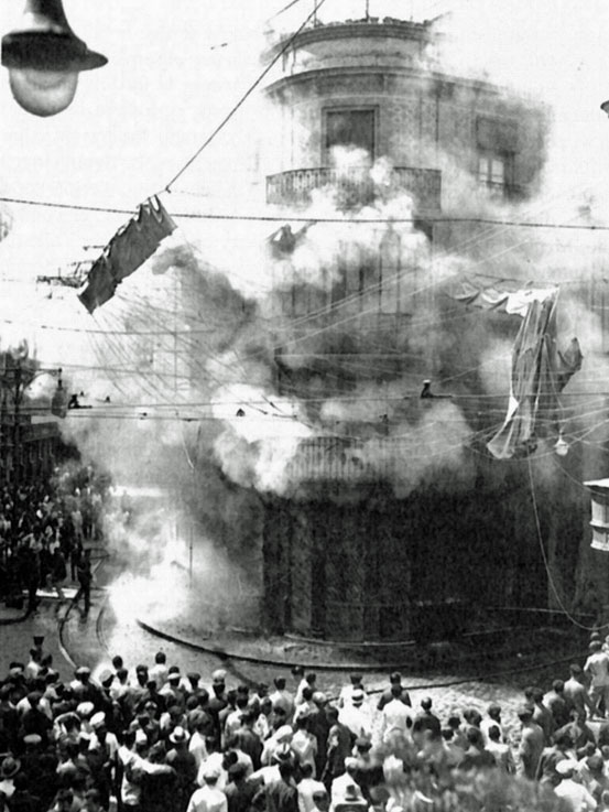 En la foto incendio de la sede de Nuevo Casino en la calle O’Donnell esquina