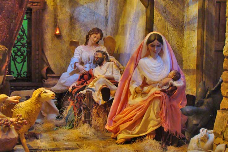 18 de Diciembre de 2016 En Sevilla ( no se en otros lugares de España ) es tradición montar ( o armar ) el Belén ( o Nacimiento, lo del Pecebre es mas propio de otras localidades españolas ) el 8 de Diciembre festividad de la Inmaculada . Lo correcto, lo clásico ( ahora está de moda eso de rancio ), es colocar en el portal al Arcangel San Gabriel (que el pobre hace doblete, puedes después lo colocan encima del portal ) y la Virgen , en el Misterio de la Anunciación , pues estamos en esas fecha en el Tiempo Litúrgico de Adviento .- Si usted tiene montado un Belén, en su casa, centro de trabajo, asociación , hermandad o templo, es un error colocar en el portal al Niño Dios, por la sencilla razón de que no ha nacido y debe ser entronizado en su momento en la Nochebuena que se celebra la noche del 24 de diciembre, víspera del día de Navidad (25 de diciembre). y es la celebración cristiana de la noche en que nació Jesús. simplemente eso es la Navidad y ahí comienza la Navidad ( otra cosa son las "navidades" comerciales, las horribles comidas de empresa de "navidades" de los tasqueros y taberneros, y después vinieron las carajotadas del solticio del invierno del posturero rojo, pero eso no viene ahora a cuento ).- La Navidad es el final y la coronación del Adviento. El tiempo de Navidad empieza en las vísperas del 25 de Diciembre y acaba con la fiesta del Bautismo de Jesucristo. Durante este tiempo, la Iglesia celebra también la fiesta de la Sagrada Familia de Jesús, María y José (domingo entre el 25 de diciembre y el 1 de enero, y si no existe, el 30 de diciembre), que es un ejemplo para las familias. El día de los Reyes Magos es la fiesta de la Epifanía, se celebra el 6 de enero. Es la fiesta de la manifestación y revelación de Dios: Cristo es la luz de todos los pueblos. El tiempo de Navidad termina con la celebración del Bautismo de Jesús por Juan el Bautista. El Bautismo del Señor se celebra el domingo después de la Epifanía.- Hoy 18 de Diciembre de 2016, para que nos situemos, NO ES NAVIDAD ( aunque El Corte Inglés esté abierto ) , coinciden liturgicamente con el cuarto Domingo de Adviento, El sueño ( o Anuncio) de San José, y la festividad de la Esperanza .- Es curioso , porque en la Basílica de la Macarena de Sevilla , hay un Belen donde se ve la escena que ven en la foto superior y sería un compendio del día de hoy . Por un lado vemos a San Jose durmiendo en brazos de un Ángel, o lo que es lo mismo, la representación iconográfica del El Sueño de San José : El nacimiento de Jesucristo fue de esta manera: María, su madre, estaba desposada con José y, antes de vivir juntos, resultó que ella esperaba un hijo por obra del Espíritu Santo. José, su esposo, que era justo y no quería denunciarla, decidió repudiarla en secreto. Pero, apenas había tomado esta resolución, se le apareció en sueños un ángel del Señor que le dijo: -«José, hijo de David, no tengas reparo en llevarte a María, tu mujer, porque la criatura que hay en ella viene del Espíritu Santo. Dará a luz un hijo, y tú le pondrás por nombre Jesús, porque él salvará a su pueblo de los pecados.» Todo esto sucedió para que se cumpliese lo que había dicho el Señor por el Profeta: «Mirad: la Virgen concebirá y dará a luz un hijo y le pondrá por nombre Ernmanuel, que significa "Dios-con-nosotros".» Cuando José se despertó, hizo lo que le había mandado el ángel del Señor y se llevó a casa a su mujer.. MATEO 1, 18-24 Es una escena de Adviento, Jesús NO HABIA NACIDO .- Por otro lado vemos a la Virgen , con la cara de la Esperanza Macarena ( repito hoy 18 de Dicimebre festividad de la Esperanza ) con el gesto algo fruncido, pero con la cara de la Esperanza . Hasta ahi todo muy bien , lo único que desentona es la presencia del Niño Dios ya nacido , al combinar dentro del portal una escena de Adviento , con una de la Navidad .- Como de unos tiempos a esta parte , en los montajes de priostias macarenos se ven cosas, digamos dulcificadamente extrañas , no sabemos si esto lo han hecho "sin querer queriendo" de carambola, o sabiendo lo que hacian , en cualquier caso hoy han dado doblemente en el clavo, por todo lo que les he explicado; pero a partir del dia 24 de Diciembre a San Jose hay que despertalo, arrancandolo de los brazos de Morfeo ( Dios del sueño ) , y que adopte una actitud adorante al Niño Dios YA NACIDO, y el Angel remonte el vuelo alado a la parte superior del portal , pues de lo contrario pasaría a ser un error garrafal .- |