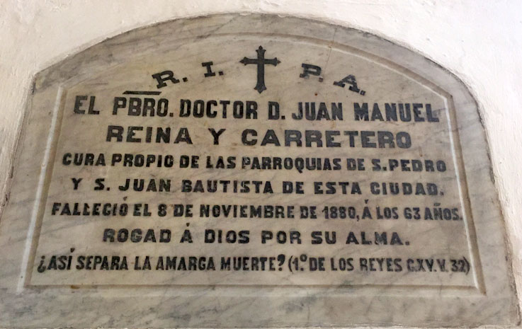 Seguimos en el mes de los difuntos , y por aquello de que este fin de semana ha habido un trasito de la Amargura de luto a Besamanos, en San Juan de la Palma ( advocación tan inexistente como sevillana ) en uno de los laterales del altar mayor esté esta lápida funeraria que posiblemente (o no ) sea curiosa para los estuiosos de la Biblia .-