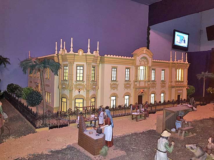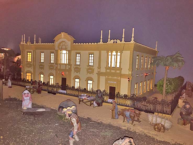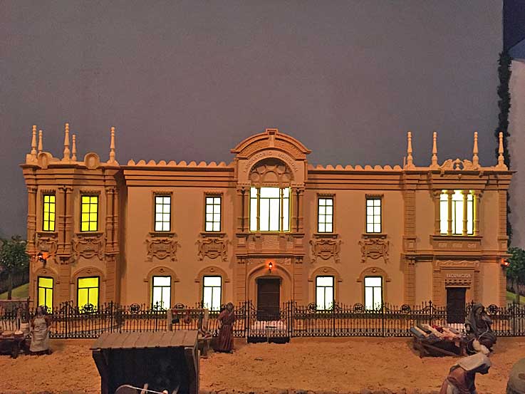 Este un Belén es muy especial porque siempre representa el Nacimiento entre grandes maquetas de edificios emblemáticos de Sevilla en reproducciones exactas .. En esta ocasión el centenario edificio del Laboratorio Municipal de Sevilla desde su fachada cuenta su centenaria historia , la fecha 1912, su autor el por entonces arquitecto municipal Antonio Arévalo Martínez. -