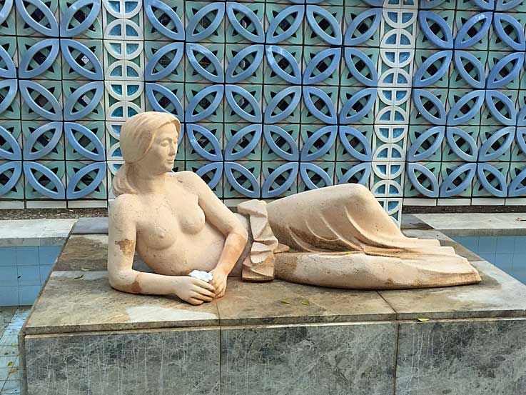 Todavía no les ha dado tiempo de limpiar la mierda de pintada grafitera ( cultura urbana) del monolito , y el estanque mas que de agua, es un estanque de hojas muertas, en proceso de putefracción .-