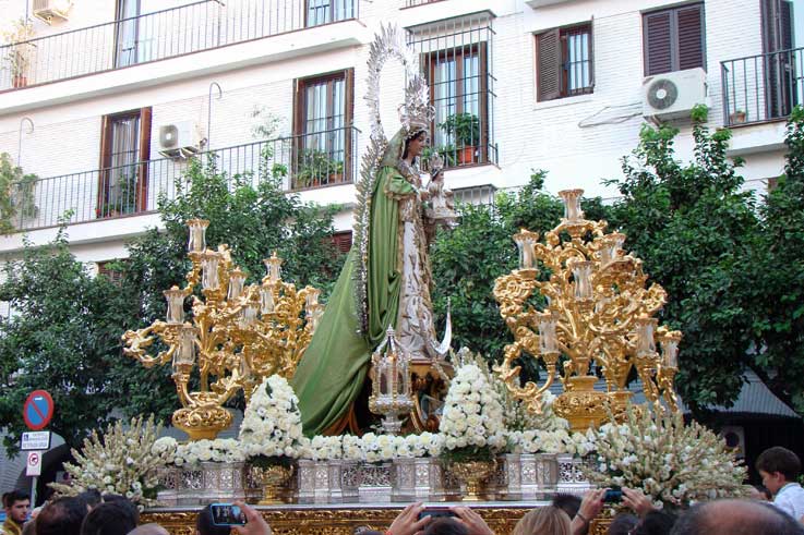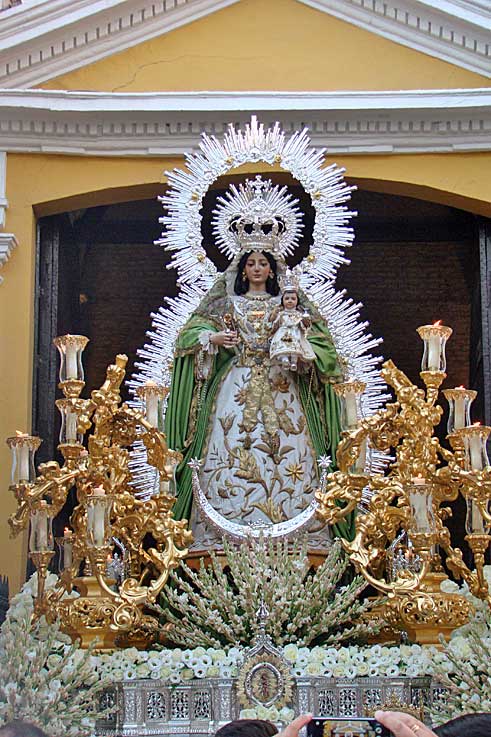 Aclarado esto, ayer sorprendió sobremanera, que a la salida del paso de la Divina Enfermera no se entonara el Himno Nacional o Marcha Real, lo que provocó entre los asistentes un cierto desconcierto y un silencio mas propio de una Hermandad de negro y esparto , sin los tradicionales y habituales aplausos .- No se alcanza a comprender como hay juntas de gobierno de Hermandades de Sevilla (que caben en los dedos de una mano y sobran dedos) que privan a sus Sagrados Titulares de rendirles los máximos honores , como son los acordes de nuestro Himno Nacional a su salida .- Señores, vivimos unos tiempos desgraciadamente inciertos donde cada vez son mas los enemigos y detractores de nuestra fe católica , por eso mismo mientras mas Cristos y Virgenes saquemos y veamos por nuestras calles mejor, pues a fin de cuenta son públicas manifestaciones públicas de fe, repito católica . Igualmente y por desgracia, si hay algo que ahora mismo nos sobran son enemigos a la Unidad de nuestra Patria, por lo que mientras mas banderas de España ( sin motivos furbolísticos), y mas veces se oigan los sones de nuestro Himno Nacional , mejor que mejor para todos .- No es necesario que nos tiremos piedras sobre nuestro propio tejados, ya nos las tiran otros, que no son capaces de hacerlos contra otros credos preocuupantemente insipientes, silenciosamente invasores, y amenazantes en España y en toda Europa .- Fdo Julio Dominguez Arjona