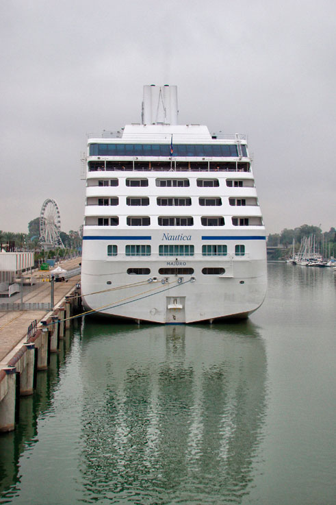 3 de Octubre de 2016 Ayer estaba fondeado en el Muelle de las Delicias de Sevilla, en su primera visita a nuestra ciudad , el lujoso crucero Nautica, buque gemelo del de Regatta e Insignia, fue construido en el 2000, con capacidad para 684 pasajeros.- El lobby de estilo neoclásico recientemente rediseñado, llama la atención por la variedad de telas y muebles. El Nautica tiene cubiertas y galerías diseñadas con madera de teca y un delicado trabajo artesanal de azulejos y mampostería. Para garantizar que la elegancia esté presente durante todo el viaje, dispone de vajilla Villeroy & Boch completamente nueva, de la plata y el cristal más finos y de una singular colección de arte de excelente calidad, que combina lo tradicional y lo contemporáneo con un toque de elegancia En cuanto a los datos técnico : Año construcción 2000 . Última fecha de remodelación 2010. Tonelaje 30.277 TRB . Registro/Bandera Islas Marshall . Eslora 181,17 metros . Manga 26 metros . Capacidad pasajeros 684 . Capacidad tripulación 400 . Camarotes interiores 28 . Camarotes exteriores con ventana 89 . Camarotes con balcón 163 . Suites 62 .Cinco restaurante . Cinco cafeterias . Salón Belleza , peluquería , Spa, Jacuzzi , Casino, Discoteca,Tiendas , Salas de reuniones, Fitness y deportes , Gimnasio Pista de running , Piscinas , entre otros mas servicios y prestaciones .- Confiemos que pronto el sentido