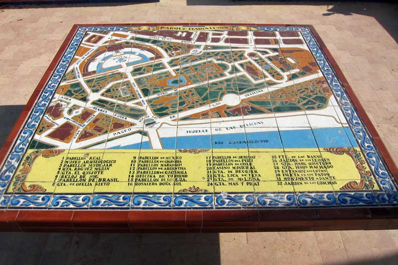 En el maltratado Parque de Maria Luisa de Sevilla, concretamente en la Plaza de Ámerica , nos encontramos con este pequeño espacio de forma cuadrada delimitado por unos bancos de baldosas y azulejos con forma de ángulo recto.. En su centro existe una gran mesa que le da nombre a la glorieta. Ésta consta de una plataforma revestida por un mural de azulejos donde se representa el plano de la Exposición Iberoamericana de 1929 en una época que no había GPS, ni Google Maps ( y aún asi hay extranjeros que se pierden ) .-