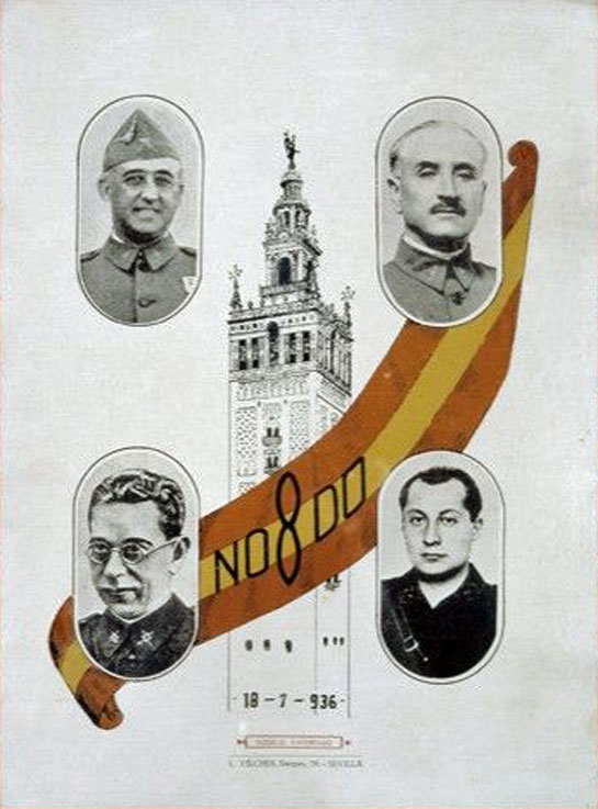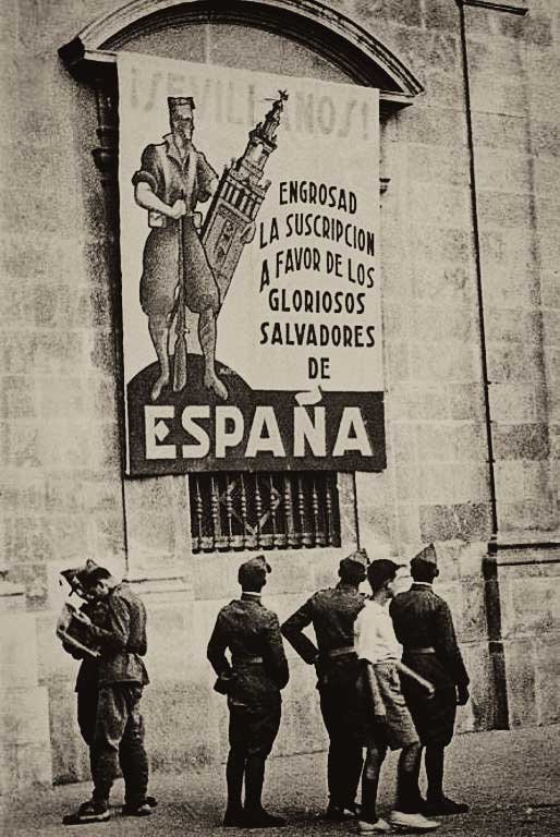 1936 , con la Giralda envuleta en la bandera roja y gualda y las fotos de
