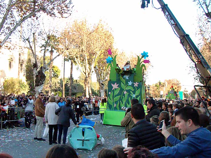 9 de Enero de 2017 Este año la extraña Cabalgata de Reyes del llamado Centenario 1918-2017 ( 99 años) , pasará a la historia por un accidente que ocurrió nada mas salir . Les tras cuento, a toro pasado de que se hayan tomado unas acertadas decisiones , por lo que para variar no tendre a nadie que se me tire al cuello al cuello, y mis texto no han influenciado para nada .- Aquí pueden ver el accidente a partir del minuto 48 del youtube oficial de la cadena de televisión que lo retransmitió La misma tarde de la Cabalgata un amigo periodista publicaba en Facebook la foto superior , con la que bromeaba con otros compañeros , ajenoen ese momento de los sucedido, por lo que en dicha red social , le comenté que gracias a Dios, se podía contar como una anécdota humoristica, lo que pudo haber acabado en un doble accidente o tragedia ( como ocurrió no hace muchos años en otra localidad próxima a Sevilla ) y donde se cuestionó su peligrosidad de cara a la Semana Santa, esto provocó todo tipo de participaciones que fueron subieron de tono ,( algunas en descalificaciones a mi persona) por lo que el referenciado periodista decidió borrar el post pata zanjar la polémica .- Aquella misma noche recibio un recriminatorio mensaje por uno de los resposanbles de esta retransmisión :"Suelo decir de tí que eres hombre riguroso. Sólo quiero contarte que el operador de la cabeza caliente que ha protagonizado el "incidente" del porrazo al muñeco se ha visto obligado a golpearlo por salvar la integridad de una joven ciudadana china que se había saltado las vallas de seguridad colándose junto a la grúa para hacer fotos. El técnico, en una maniobra que le honra, ha evitado golpear con violencia a la chica que ha cometido la imprudencia de meterse en vallado, en zona prohibida y perimetrada. Lo que ha ocurrido ha sido lo de menos, gracias a la pericia del operador. No es justo por tanto tu comentario. No quería más que informarte. Es sólo para que sepas la verdad." ( No violo ninguna intimidad de correo pues no identifico al remitente ) Al dia siguiente en la mañana de Reyes esta fue mi respuesta : " no es cuestión de rigor, sino de proximidad , yo estaba con mi mujer desde las 3 de la tarde junto al vallado de la “cabeza caliente” y tras el vallado de la Cabalgata ( que solo sirve para que después fotógrafos y cámaras acreditados hagan gala de la tradicional falta de educación y respeto haya las personas que llevamos allí mas de dos horas a pié quieto esperando ) , por eso puede hacer este reportaje: Cabalgata Reyes Magos de Sevilla 2017 gratis et amore . Un servidor no es “pofesional” porque no cobra , soy así de tonto, pero estoy igualmente “metido en la trinchera” .- Yo no he escrito un articulo ( que daba para ello, pues era testigo y tengo muchas mas fotos ) simplemente he respondido en Facebook al periodista X, porque trivializaba el incidente , y le informaba que gracias “Al que esta en San Lorenzo” , evitó que hoy podríamos estar hablando de una DOBLE desgracia; pues por salvar la integridad de una fotógrafa oriental ( según me cuentas, y no pongo en duda ) , estuvo a punto en su pericia ( o mas bien impericia ) de llevarse por delante a la chica que coronaba la carroza ( imagínate un golpe con una cámara de ese peso, y caer de espalda desde esa altura ) y de propina por centímetros, no le cayo el armazón de hierro del muñeco en la cabeza a uno de estos mal educados fotógrafos que estaba justamente debajo y detrás de la misma ( ese fotografo sale en la foto superior ) .- Gracias al Señor de Sevilla, fue un doble milagro, y todo ha quedado en la broma del muñeco roto . Hoy podrimos estar en todos los telediarios de España con dos heridos o dos muertos . Se habría desnudado a dos santos, por vestir a otro ,( según tu me cuentas y no pongo en duda ) , pero por otro lado la acción de este técnico fue tan heroica como discreta . pues aquello estaba hasta lleno de policías nacionales con cara de pocos amigos, mirando al público (yo tenía uno a una cuarta ) , y allí nadie movió un músculo, ante un comportamiento extraño e inadecuado como saltarse una valla . Mi comentario te parecerá injusto, pero fue lo que ocurrió , y lo que se evitó, porque sencillamente un servidor estaba allí , y no necesito que me cuentes lo que viví en primera persona .- Esto que afortunadamente ha quedado en el mundo de lo anecdótico, deberías de tenerlo presente cuando le metéis por los hocicos a los Sagrados Titulares de cualquier Hermandad en la Campana ( imagínate pegarle un porrazo al “muñeco” del Amor, al Cachorro , a Pasión, El Calvario o al Gran Poder por culpa de salvar a una fotógrafa china ) , así que deberías de plantearos, un perímetro de seguridad , no para el equipo, sino para lo que filmáis, porque a la vista está que es mas peligroso" .- Ayer aparecia en nuestra prensa local y en las redes sociales que el incidente del pasado cinco de enero entre la cámara de una televisión local instalada en una cabeza caliente y una de las carrozas de la cabalgata ha puesto en alerta al Cecop y al Consejo de Cofradías. Solo pensar en la posibilidad de que el impacto hubiera sido entre la cámara y una Sagrada Imagen provoca pavor. Por eso el delegado de seguridad Juan Carlos Cabrera pretende regular el ámbito de actuación de estas cámaras y limitar mucho sus movimientos .- No tengo por menos que reiterar ( ayer lo hice en mis redes sociales ) mi felicitación al sr Cabrera, por tan prudente y acertada decisión , pues estas "cabezas calientes" no solo son molestas dificultan la visión de los que hna pagado un dinero ( y de lo que se finacia parte de nuestra Semana Santa ) para ver las cofradias , sino manifiestamente peligrosas, un despiste ( justificado o no ) de su manipulador puede llevar a Sagrados Titulares , algunos obra de Juan de Mesa, Martinez Montañez o Ruiz Gijón, a una penosa imagen como las fotos superiores y eso no h