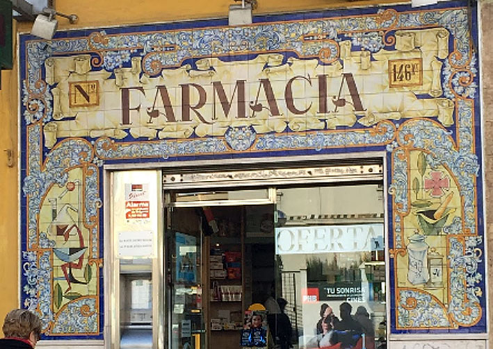 Si el otro día veíamos las obras de arte que había en los centros hospitalarios sevillanos ( VER ) , hoy les traigo farmacias sevillanas donde sus propietarios actuales ( o antiguos) han querido exhornar sus establecimientos con lienzos cerámicos .-