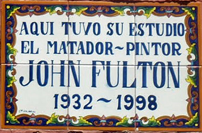 Tenía una galería de arte, la Galería John Fulton, en la recoleta y hoy saturada de veladores plaza de la Alianza , del barrio de Santa Cruz de Sevilla donde se colocó este azulejo recordatorio .-