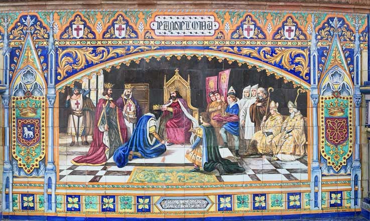 creando una escena cortesana del Reparto del reino de Navarra, en la que se