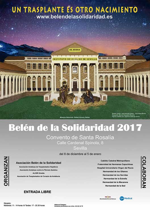 20 de Diciembre de 2017 Un año mas han montado el Belén de la Solidaridad , organizados y siendo sus autores, la Asociación Belén de la Solidaridad y las Asociaciones de Trasplantados de Sevilla basados en monumentos sevillano que instalan todos los años personas trasplantadas en el Convento de Santa Rosalía, calle Cardenal Spinola de Sevilla .- En esta edición se han recreado la desaparecido en 1958 Instituto de Higiene del Sevilla del doctor Murga ( VER ) que se encontraba donde hoy está el ambulatorio de la calle Marqués de Parada de Sevilla .- Del 8 de Diciembre al 5 de Enero en horario de 11h a 14 horas y desde la 17 horas a las 20 horas y media Cerrados el 25 Diciembre y 1 de Enero .-