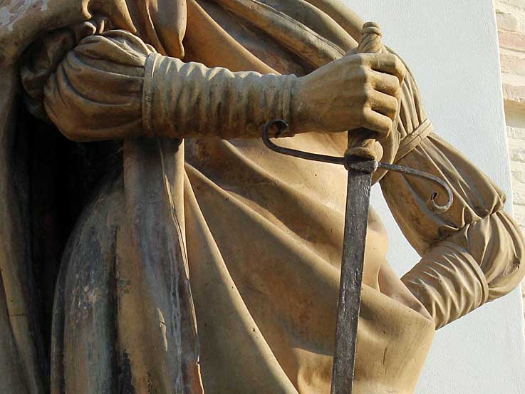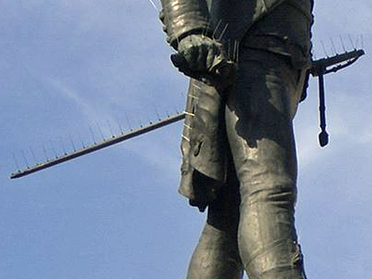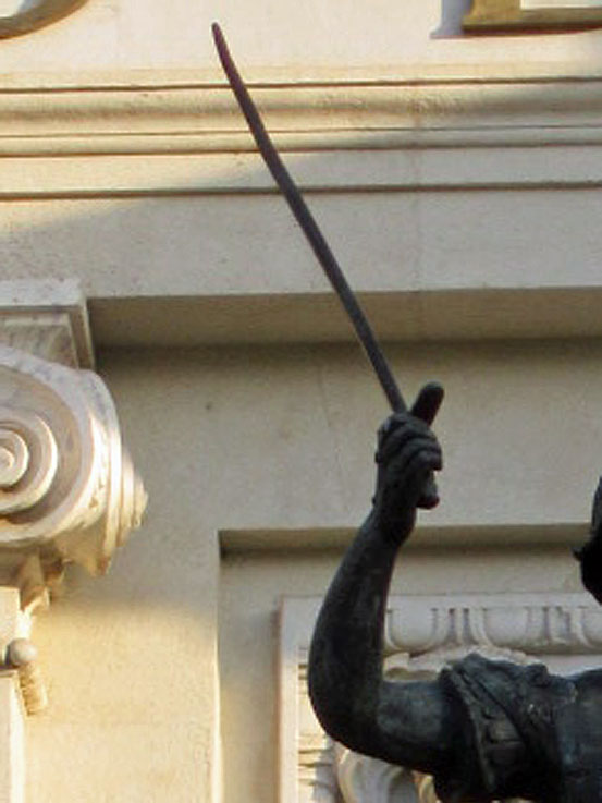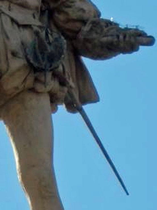 Hoy a finales de 2017, como afortunadamente Sevilla no tiene mas problemas que llevarse a la boca, lo tenemos todo resuelto, Podemos quiere quitar la espada a San Fernando en el escudo de Sevilla porque «simboliza la guerra» ( esto no es coña , ni inocentada es de verdad ) . Oigan y llevan razón estos señores, San Fernando es un santo social y politicamente incorrecto, en vez de ponerles un piso, darle una paga y sanidad de gañote a los moros, los puso de patitas en la calle de forma nada solidaria, racista y xenófobo ...como dirian ellos en su discurso con todo acabado "ista" y "fobo".- Al pobre San Fernando, le quieren quitar su espada "Lobera" que para si la quisiera EMASESA, pues en el cortijo de Cuarto, el Santo Rey la hinco ( la espada se entiende) y al grito de Valeme Señora , brotó agua en el que sería el pozo santo, saciando a sus sedientas huestes y mesnadas , antes de la reconquista de Sevilla que fue por asedio, y no por batalla . Igual como nuevo escudo de nuestra ciudad, ponen en su lugar a Fernnado III , con San Isidoro y San Leandro, sentados en un velador simbolo y emblema de la Sevilla actual de inmovilidad, y ruidos ciudadano , pues somos el mayor chiringuito de España , y donde estaba la espada le colocan una litrona .- Sevilla es una ciudad mas espadachina que Errol Flynn , lo es tanto que hasta nuestro excmo sr alcalde lleva por apellido Espadas, que como se decuide Podemos pide que hasta tambien se cambie de apellido . Aunque por otro lado los podemitas hispalenses tambien podrían invitar a su jefe Iglesias a cambiarse el suyo, porque igual molesta a otros credos, y resulta excluyente .- Pues bien, como hace cada mañana mi amigo Antonio Jimena que nos pone a prueba si conocemos ( o no ) cada rincón de Sevilla a un nutrido grupo de "guasá" y de sevillanos, aqui les dejo un trozo de los monumentos con espadas que según los podemitas "simbolizan la guerra" , y como hizo el Papa Pio IX ( inventor de los pasteles que llevan su nombre ) , les da por coger una radical y arrancar todas las espadas sevillanas .- Los resultados al final y mídanse a si mismo en su conocimientos de sevillania .-