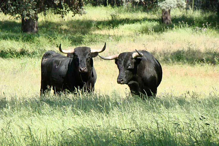 10 de Mayo de 2017 Ayer tuve la oportunidad de visitar la Dehesa Fria en el termino de Constatina - Sevilla- donde pasta la ganaderia de reses bravas de Dª Dolores Aguirre, donde me atendieron de una forma exquisita . Ver : http://www.fincadehesafrias.com/ganaderia/ .- Para acabar con todo este absurdo movimiento organizado y finaciado antitaurino , asi como los animalistas que a veces son mas animales que los propios animales, yo invitaria a las ganaderias que los invitaran a todos estos individuos/as a visitar una ganaderia de toros donde en su habitat toro y dehesa, son dos páginas de una misma hoja . Como viven, donde viven, como los cuidan, como los alimentan, vigilan, la asistencia veterinaria que reciben , obligándolos a hacer ejercicio, respetando sus horas de descanso; en su suma como los miman durante años, ya lo quisieran para ellos cualquier mascota hogareña . Sencillamente viven como auténticos reyes .- Por otro lado , sin darnos cuentos nos fuimos metiendo con un todoterreno en los diferentes corrales , y cuando uno tiene a escasos metros a un toro de mas de 600 kg , con dos cuernos que recuerda a un perchero de una casa antigua , teniendo por capote la simple puerta de un coche, les confieso que la palabra miedo se queda bastante corta, mas aún cuando te mira a los ojos unos de esto bellos animales con su increible poder . Les aseguro que se te paraliza el cuerpo con un indescriptible escalofrio por la espalda, y la boca completamente seca .- Tras un largo recorrido a un servidor, tardó en entrarle el cuerpo en caja , y llegue a plantearme que lleva a un torero a ponerse delante de un toro, les aseguro que el valor no es sufiente, el cerebro les tiene que funcionar de una forma diferente al resto de los mortales .- Las fotos se quedan cortas para describir la belleza de estos astados que son lidiados en San Isidro o corren por la calle de la Estafeta . El TORO, nuestro TORO , forma parte de nuestro patrimonio nacional .- Video en 360º . Moviendo el ratón sobre la imagen es como si estuviera alli |