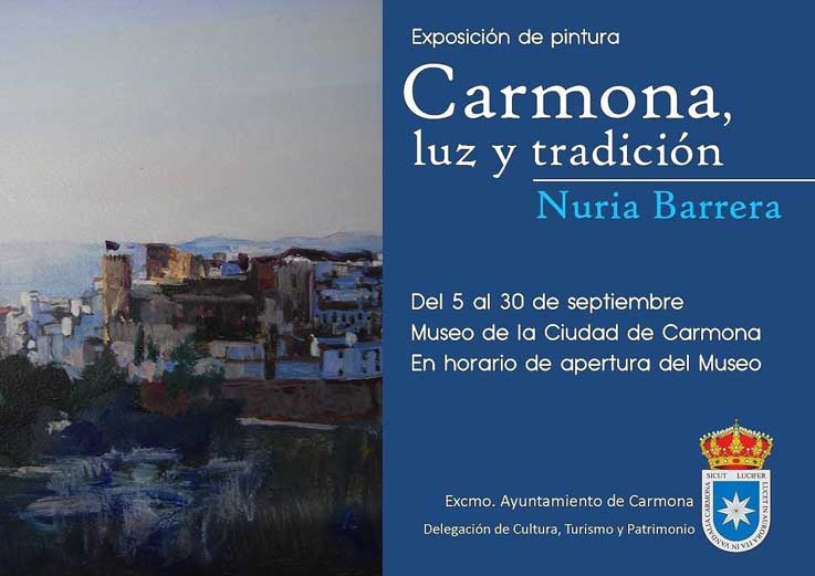 7 de Septiembre de 2017 Mas que recomendable la exposición de pintura paisajistica y costumbrista de la pintora Nuria Barrera, donde a través de sus pinceles nos da su visión de la monumental y vecina localidad de Carmona, así como de sus festejos y tradiciones, todo ello enmarcado en el palaciego Museo de la Ciudad de Carmona .- Una recomendación, váyanse directamente al parador encontrarán facilmente aparcamiento, y está muy cerca de allí andando .- |