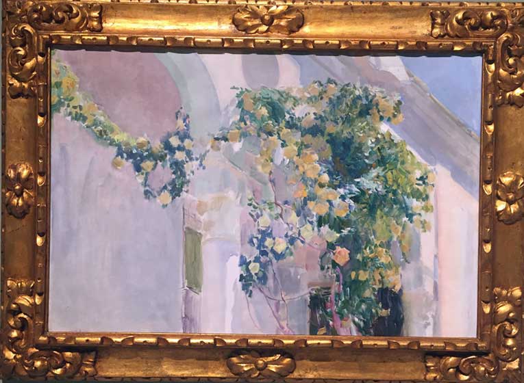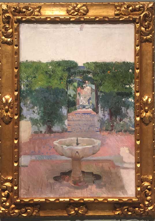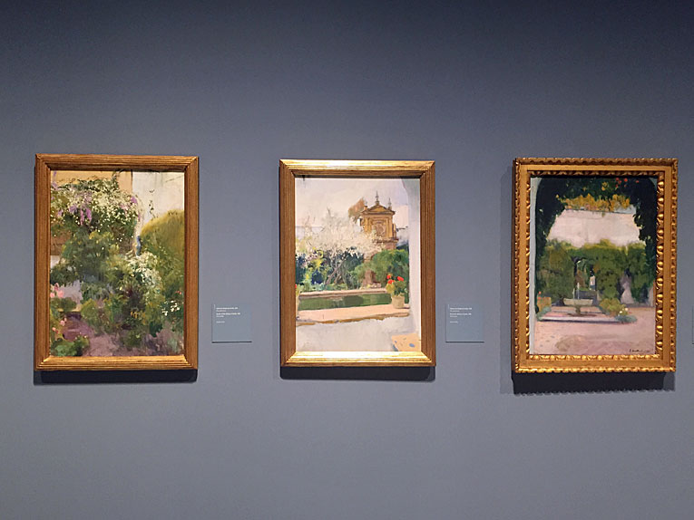 7 de Julio de 2017 En una ciudad como Sevilla, donde la oferta cutural es casi nula , es un lujo ver exposiciones como estas del pintor Joaquín Sorolla en Caixa Forum, ( bajo ese horror de la Torre Pelli ), donde en un inmeso espacio expositivo, se puede ver una mas que importante colección de oleos donde plasmó los jardines de los Reales Alcazares de Sevilla , con los que tuvo una especila vinculación ( VER ); asi como tambien hay cuadros de los jardines de la Alhambra de Granada o de su propia casa .- El único pero, es que el continente de la misma está muy lejos de todo, hubiera sido un estruendoso éxito de visitas haberla expuesto en la sede que tiene la Caixa en la Plaza San Francisco , donde les sobra tambien espacio, y donde ha habido muestras de bastante menor interes .- No se la pierdan , porque es mas que recomendable. Aquí les dejo algunos botones de muestras . La entrada solo vale 4 € y si es cliente de la Caixa ( acreditable con tarjetas ) es hasta de gañote .- |