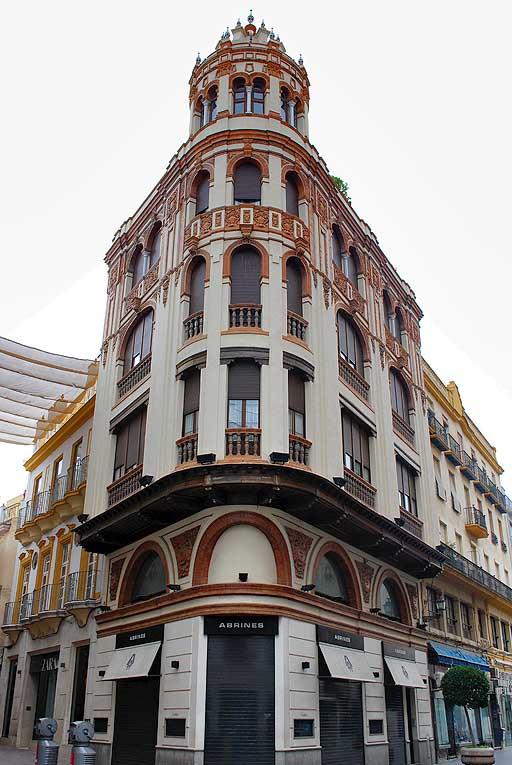Concebida para aunar la vivienda colectiva con el uso comercial en una calle que, por su inmediatez a la de Sierpes, participaba del impulso de aquella, el edificio de una notable altura para la época , apuesta por una imagen singular. Talavera busca el equilibrio en la composición de las fachadas, concentrando el ornamento y valorando la esquina con la presencia de un mirador .-