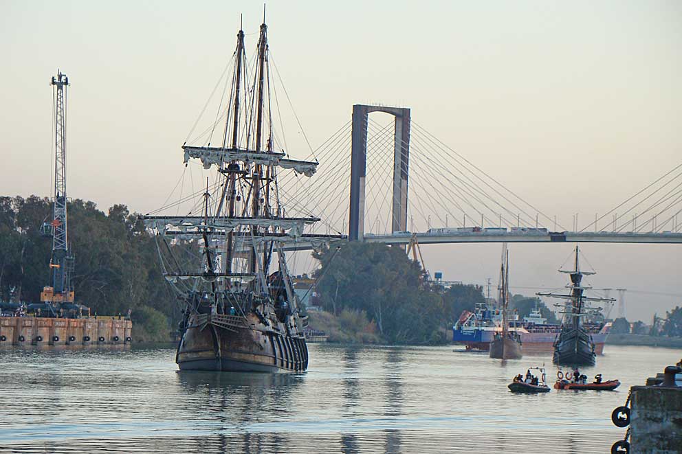 Si todo el que leyera esto, porque le gustan : los artículos, reportajes, fotografías, vídeos , curiosidades o lo usa como instrumento de consulta, donara solo 5€, solo tendría que recaudar fondos un día al año. Pero no todos pueden o quieren donar. y con solo una vez al año, mas que suficientes personas podrían tener a bien donar, por algo que les agrada visitar diariamente . Este año, por favor consideren donar 3€, 5€, €20, o lo que puedan contribuir para poder continuar con LA SEVILLA QUE NO VEMOS , donde el equipo es de una sola persona, y se le dedica cotidianamente no solo mucho esfuerzo, mucho tiempo, sino también dinero en renovación de material informático, gráfico, en nuevas tecnologías, transportes, internet , etc .- La donación la pueden efectuar en esta cuenta ES16 2100 9715 8322 0003 3072 , y así podrá seguir disfrutando de LA SEVILLA QUE NO VEMOS .Gracias Julio Domínguez Arjona EL GALEÓN ANDALUCÍA, LA NAO VICTORIA Y EL BOA ESPERANÇA LLEGAN JUNTOS A SEVILLA |