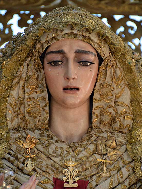 Si ya de por si el horario era mas que holgado, pasó a papel mojado , pues prácticamente no se cumplió en su totalidad. Debería haber entrado en el templo catedralicio a las 23 h 30 min y entró pasada la una de la madrugada, siendo un injustificado despropósito . Como dice el refrán : "Tanto se celebró el vino, que se volvió vinagre" , pues esto fue lo que ocurrió con una absoluta desconsideración hacia los efectivos que acompañaban el cortejo, a su cuerpo de hermanos con cirio, y hacia un respetable, nada respetado , que se desplazaba desde diferentes puntos de Sevilla y tenía la opción o de marcharse o plantarse mas de una hora de retraso .- La Cruz de Guía había momentos que se llevaba parada mas de 40 minutos sin explicación para tal motivo . No hay duda que la "macarenización - Plaza de España", ha hecho mucho daño en los eventos extraordinarios cofradieros en una especie de : " y yo mas " .- Me han llegado las quejas de compañeros fotógrafos que a pesar de haberse molestado en acreditarse, los situaron en una especie de corralito bastante distanciados de la salida . Hay Hermandades que se les olvida que las fotografías y videos hacen un efecto amplificador a nivel mundial , y donde hermanos en la diáspora lo pueden ver .- Visto lo visto, estas serán las primeras y últimas fotos que verán en esta página de esta coronación. Todo tiene una medida, los horarios se hicieron para cumplirlo, y no todo vale con el consabido "vamos a disfrutar", después ponemos el grito en el cielo, cuando nuestra autoridad eclesiástica pone orden, pues con cosas como estas le damos la razón .- Una pena .-