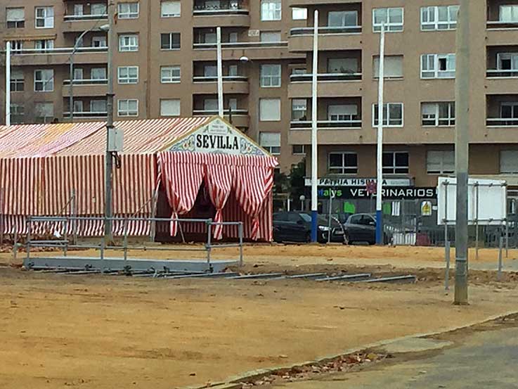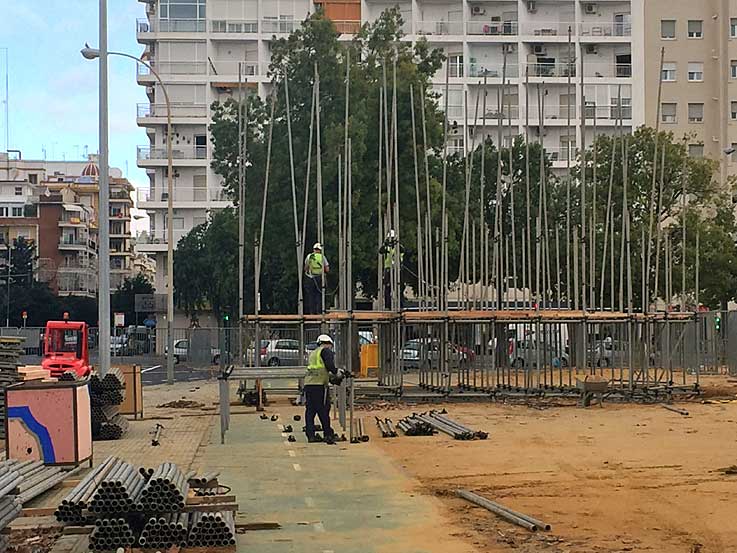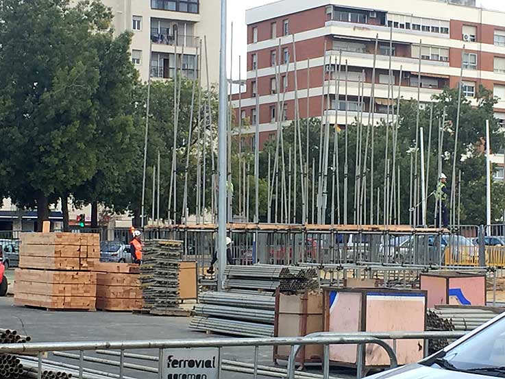 29 de Diciembre de 2017 Un servidor siempre lo ha dicho además de capillita cofradiero, tambien es capillita feriante . Casi todo los años voy a lo colocación del primer tubo de la portada de Feria , que este año esta programado para el dia 2 de Enero de 2018 . Pero este año lo real va por un lado y lo oficial por otro .- Para mi sorpresa, el pasado dia 27 de Diciembre, un lector me facilitó la foto superior, al observar que ya habia colocado unos tubos en uno de los laterales de la portada . Para asegurarme bien, al dia siguiente ( ayer dia 28 ) me volví a pasar , y la cosa iba para arriba con cierta premura como se puede ver en las dos foto siguientes .- Curiosamente en el otro extremo