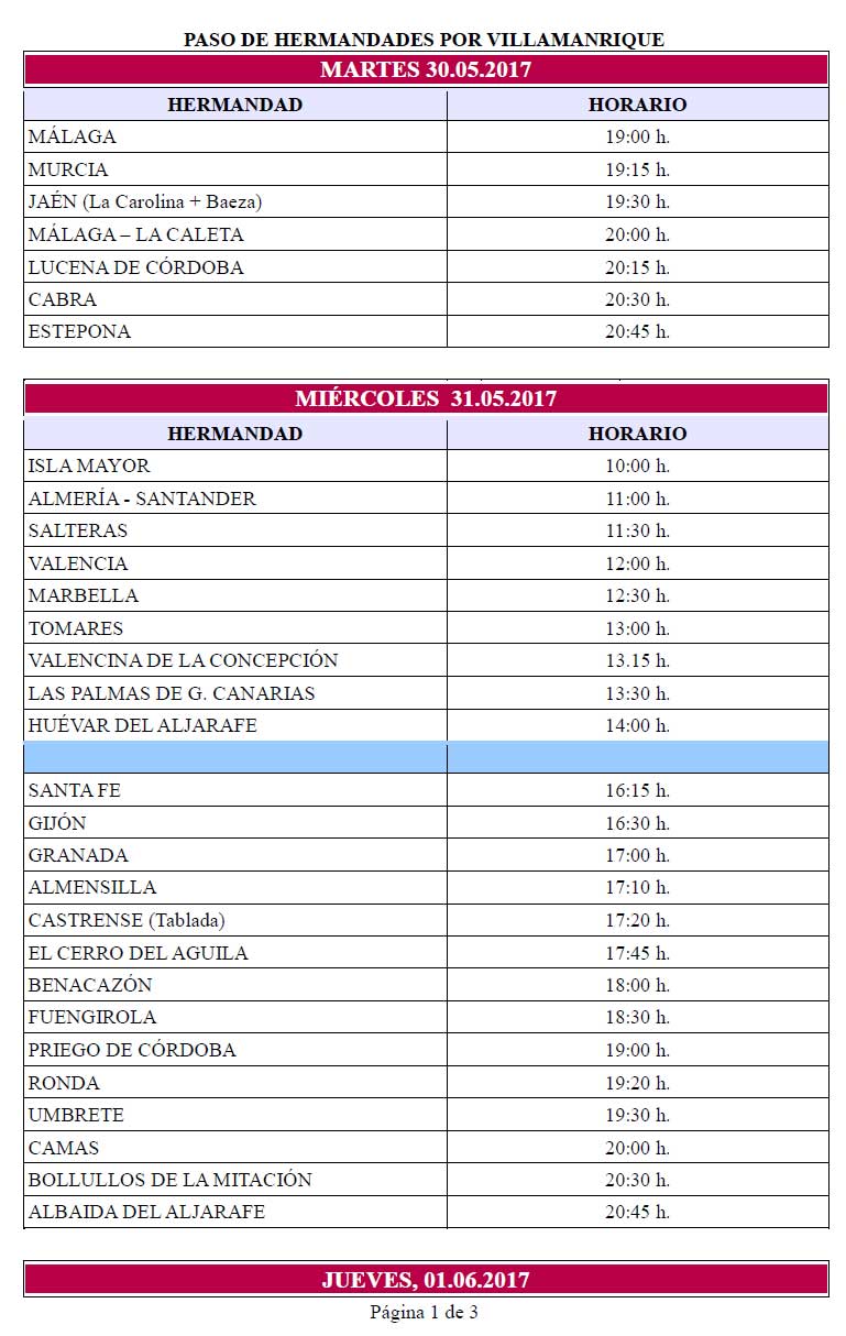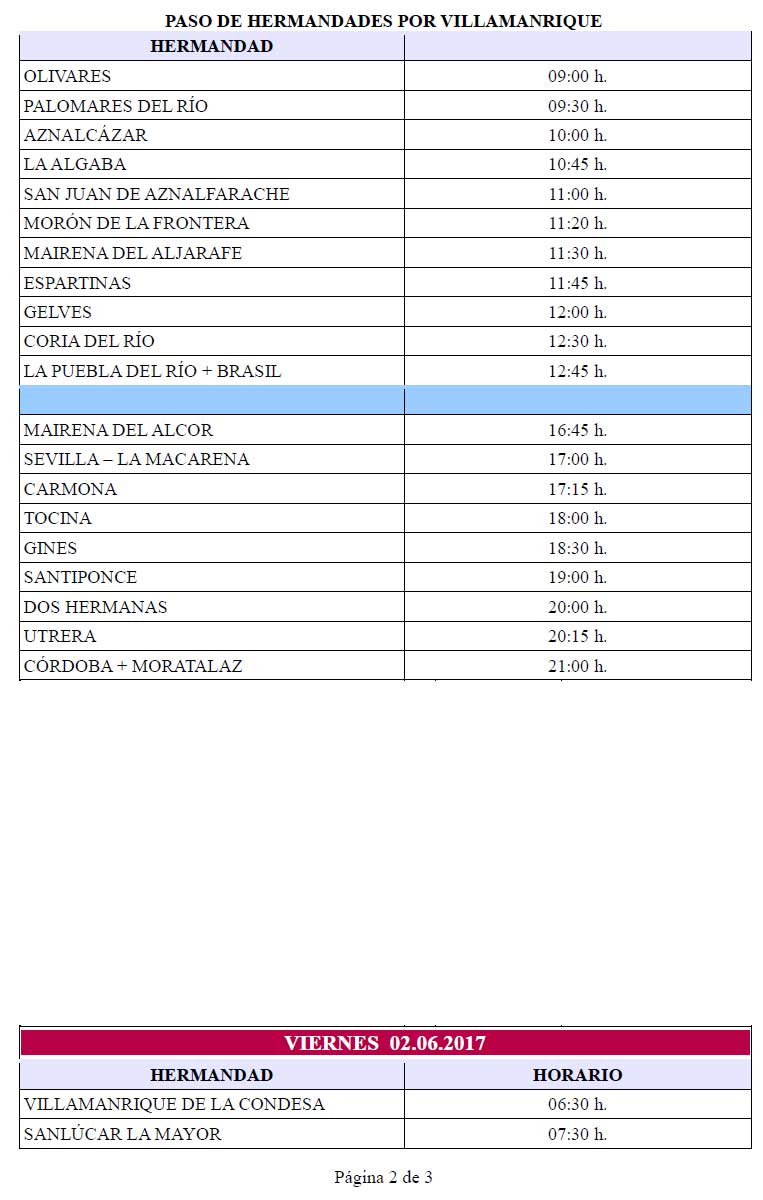 DE LAS HERMANDADES ROCIERAS POR VILLAMANRIQUE DE LA CONDESA 2017