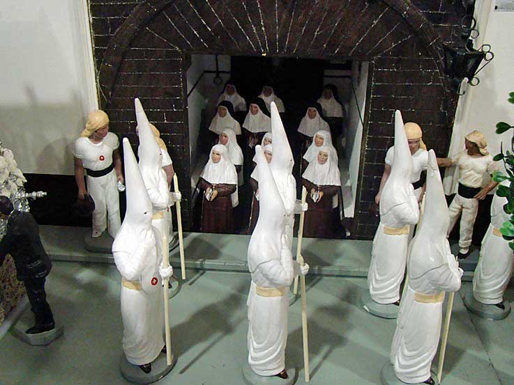 En esta muestra se recrean cofradias completas con todos sus pasos, nazarenos, costaleros, acolitos, y ademas monumentos, iglesias, arboles, mobiliario urbano etc , hasta el mas mínimo detalle que hará las delicias de los pequeños ( y de los no tan pequeños ) .-