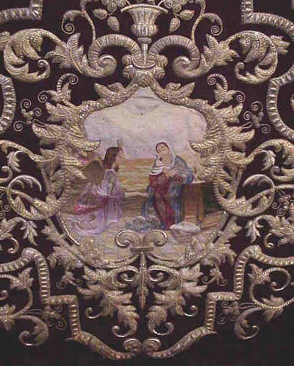1.-Paño de bocina de la Hdad de Santa Marta .- 2.-Gloria del palio de la Virgen de la Encarnación .- 3.-Faldones del palio de la Amargura .- 4.- Miniatura delantera del paso del palio de la Hdad del Buen Fin .- |