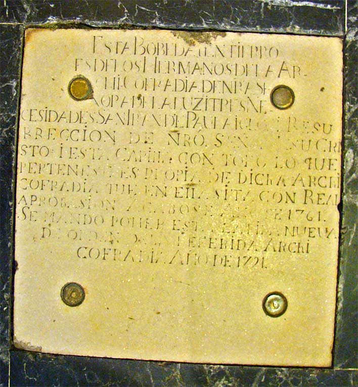 Como siempre les comento en Sevilla hay que mirar mas que un borrico atado a una tapia , y hay veces que nos encontramos lápidas mas que interesante que nos cuenta la historia de lo que estamos viendo . Este es el caso de esta pequeña lápida que hay en el suelo de la Capilla de la Hermandad de la Carreteria :