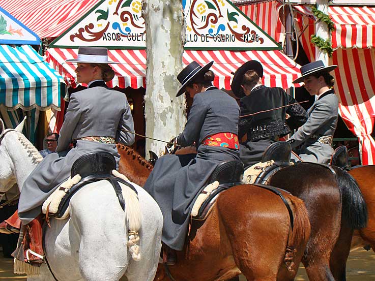 19 de Abril de 2018 Miercoles de Feria, segundo día de Feria , con un cielo y temperatura de Feria : calor . Con gran afluencia de público, los cuerpos y las carteras aguantan .- Queridos lectores desagradables y leales detractores, este increible esfuerzo de impecable puesta en escena, de caballistas, flamencas ( donde usted jamas encontrará dos iguales entre decenas de miles ) , en el paseo en las casetas, etc, salen del esfuerzo económico de los sevillanos de a pié ( y de a caballo ), para su disfrute personal junto a familiares, amigos, deudos y afectos .- Quizás nuestro alcalde y nuestro delegado de fiestas mayores, continuan sin captar la idiosincracia de una de nuestras fiestas mas universales, donde los de fuera vienen pero de la mano de los de dentro . La Feria de Abril de Sevilla , no es explotable turistica , ni hosteleramente, pues pasariamos a convertirnos en un vebenero parque temático .-